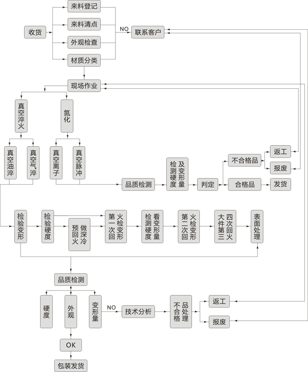 氮化是將工件放入大量活性氮原子的介質中,在一定溫度與壓力下,把氮原子滲入剛件表面,形成富氮硬化層的熱處理。